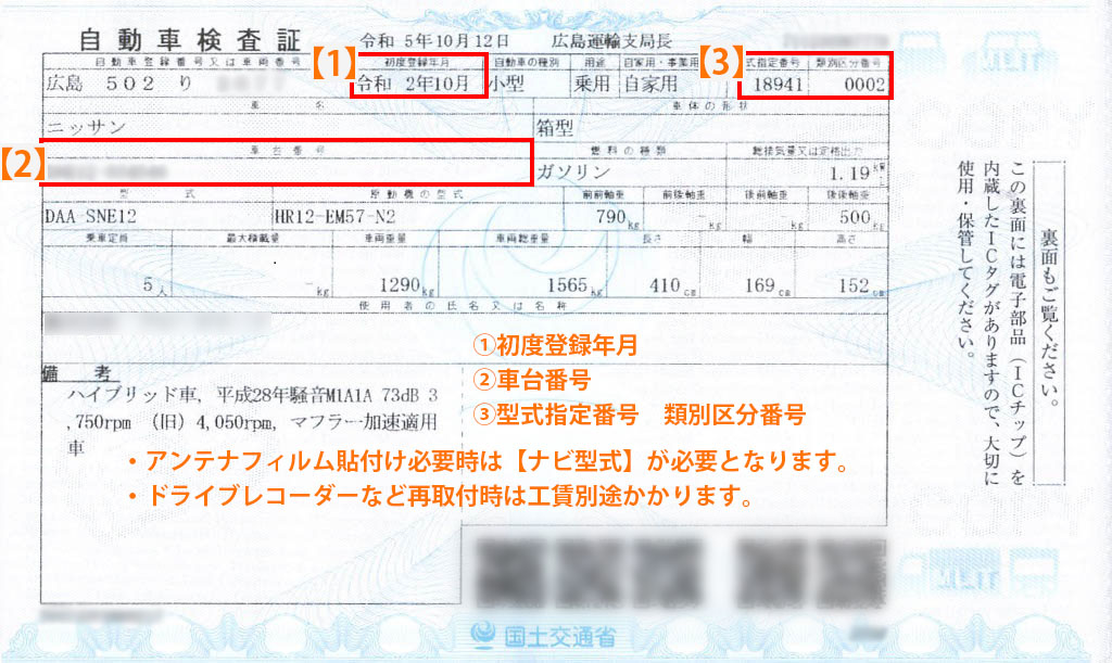 ※自動車ガラスについてのお問い合わせの際は、以下の情報が必要となります。
